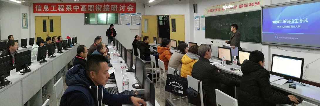 2017年12月12日,四川化工职业技术学院成功举办了首届中高职衔接论坛,此次论坛邀请了来自省内30多所中职学校共130余人,围绕“中高职交流合作,探索中高职衔接的新思路、新办法”展开探讨,信息工程系圆满完成了实训室参观及联合教研活动。