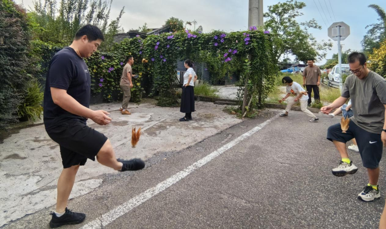 活动现场氛围轻松愉悦、趣味盎然。踢毽子环节中,大家在轻盈起落的毽子间舒展身心,欢声笑语不绝于耳;植物藤下光与影的交汇中,老师们亲切交流,分享教学心得与生活趣事;集体大合照环节,用镜头定格下教师们团结融洽的美好瞬间。