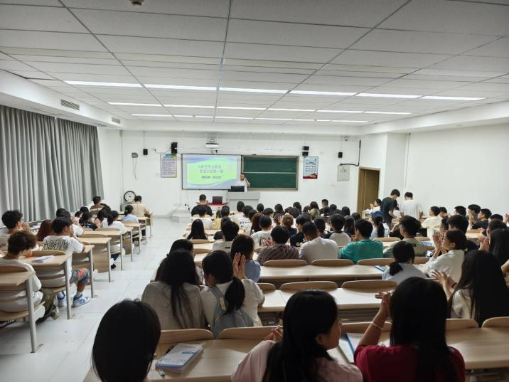 唐岚老师介绍了专业概况、前景、人才培养、课程设置、竞赛与就业情况,并就专业学习、时间安排和环境适应等方面提出建议。互动环节中,师生围绕就业、学习方法等展开交流,有效提升了新生对专业的认知与兴趣。