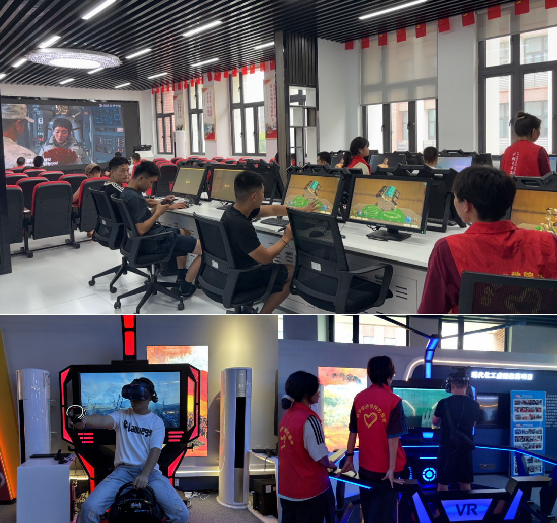 在学院虚拟仿真实训基地(泸州市VR科普基地),肖华亮、卢燚、黄月三位教师就VR技术、无人机技术两大模块向参训人员进行了授课。VR技术培训聚焦“沉浸式体验+场景化应用”,打造了多维学习场景,学员们通过VR设备深度体验化工生产流程模拟、火灾逃生应急演练等实用内容,在虚拟环境中自主调整参数、模拟处置突发事件,直观掌握技术要点。此外,VR体验中心特有的“爬雪山过草地”、“飞夺泸定桥”、“四渡赤水”等红色主题场景也吸引了全体学员。大家有序排队体验,在沉浸环境中重温革命历史、感悟红色精神,实现了技能提升与思想教育的双丰收。