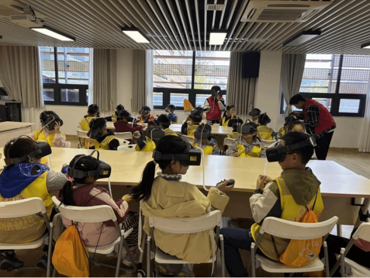 为让孩子们近距离感受科技的魅力,2025年11月13日,数字经济学院虚拟现实技术应用专业专任教师唐岚带领学生志愿者走进泸州市妇女儿童中心,为25名孩子带来了一场沉浸式VR科普活动。