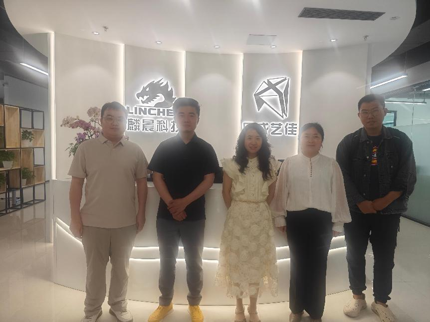 随后,团队前往成都乐成艺佳科技有限公司调研。公司王总经理详细介绍了企业业务范围、项目进展及校企合作成果。罗琼副书记重点介绍了学院虚拟现实技术应用和数字媒体技术专业的发展现状,并强调其与公司业务的契合点。双方就岗位需求、人才培养、产教融合、企业定向班及实习实践基地建设等达成合作共识:企业将为相关专业提供50余个实习就业岗位,并与学院共同推进定向班和实习实践基地建设,为校企深度合作奠定坚实基础。