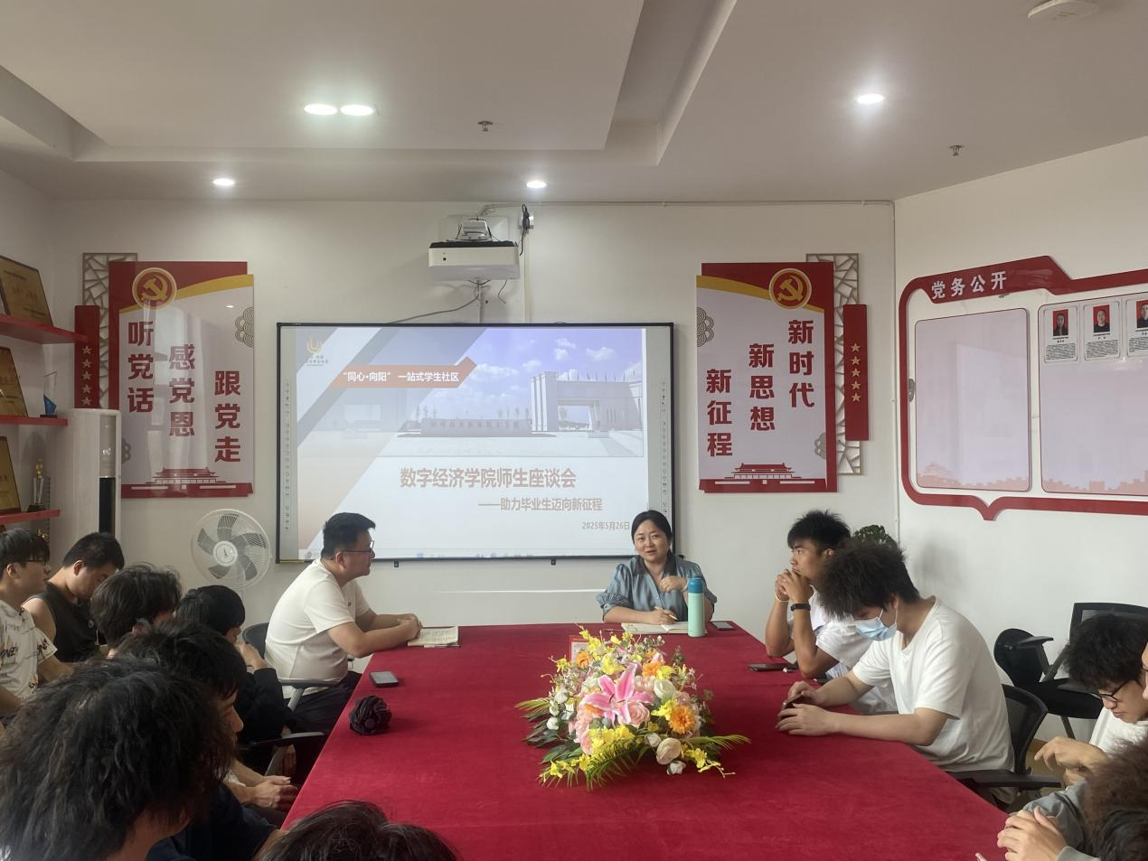 为做好毕业生离校前的教育、服务和指导工作,近日,数字经济学院在综合楼349会议室召开了2025届毕业生座谈会。学院党总支副书记罗琼、专业教师代表武江毅、辅导员代表唐雪梅及2025届毕业生代表40余人参会。