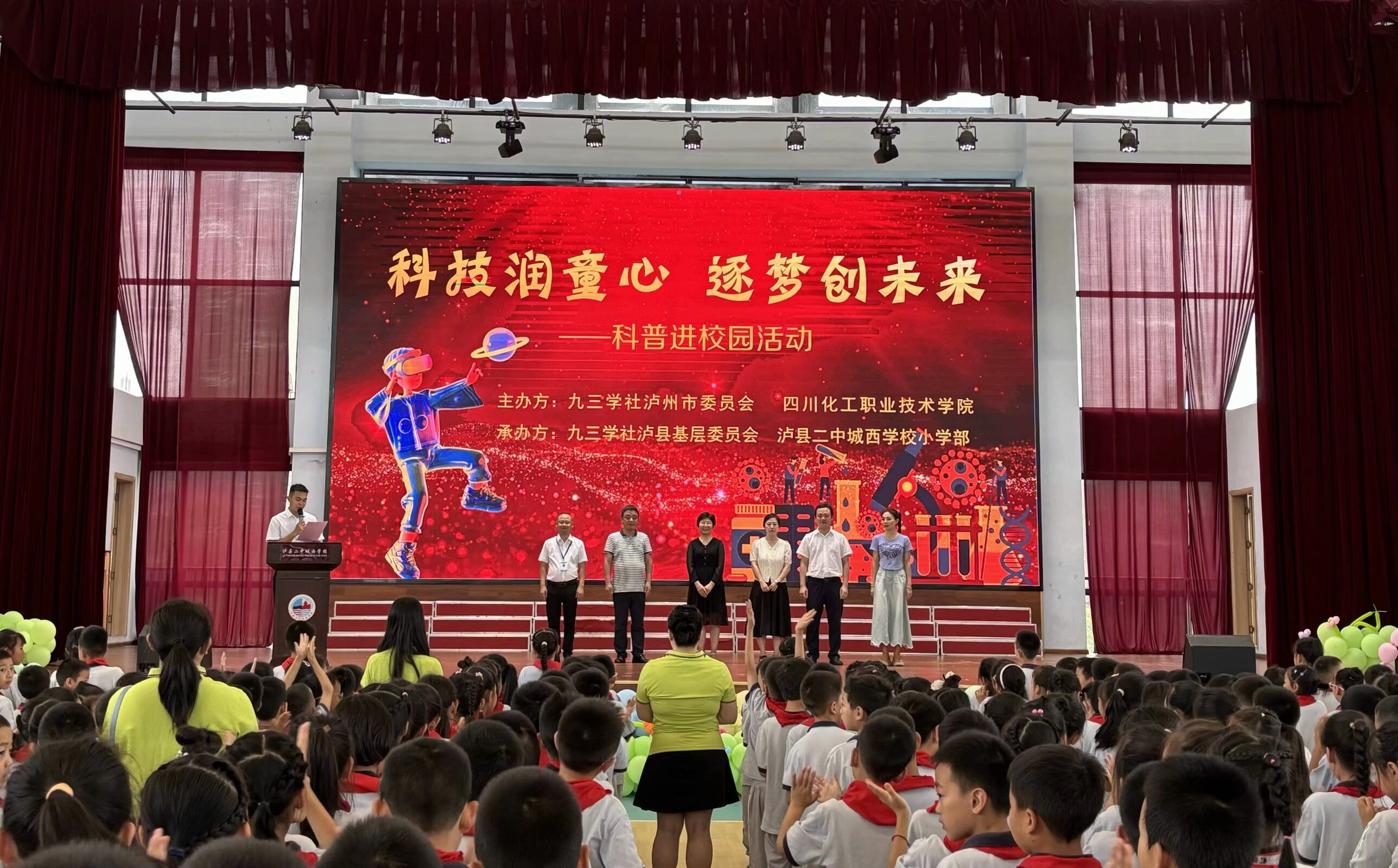 为庆祝第75个“六一”国际儿童节, 5月30日,数字经济学院虚拟现实技术应用专业负责人肖华亮带领VR科普基地志愿者一行人走进泸县二中城西小学,开展了一场别开生面的 VR 科普体验盛宴。此次活动积极响应九三学社泸州市委员会、四川化工职业技术学院携手开展的“科技润童心,逐梦创未来”科普活动,吸引了400余名小学生参与。