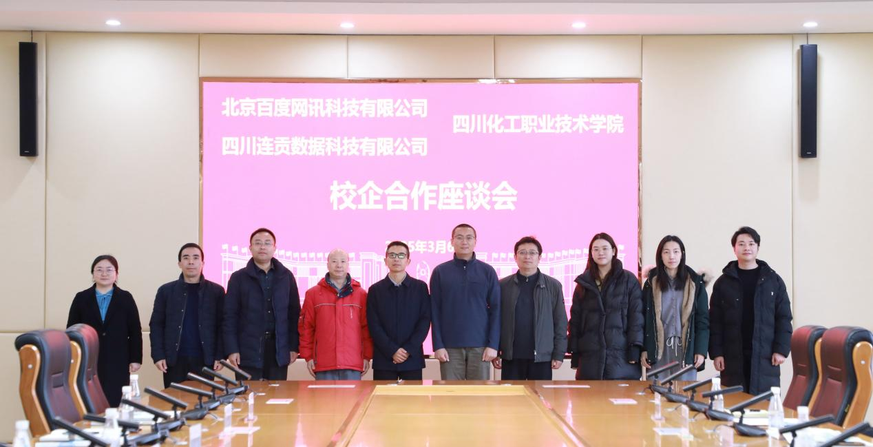 近日,北京百度网讯科技有限公司百度地图生态合作总监辛浩元、百度地图产教融合业务负责人谢红亚、百度IDG-BPO业务负责人马梦宇,四川连贡数据科技有限公司董事长翁广斌、人力资源总监甘子杰一行来校开展校企合作座谈。学校党委委员、副院长向桢参加座谈会,数字经济学院院长刘钊勇主持会议。