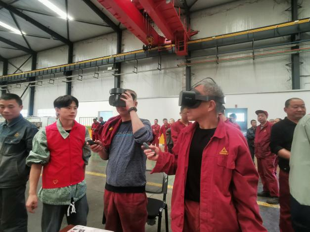 四川邦立重机有限责任公司制造部115名一线工人参加活动,他们戴上VR设备,不仅体验了高空坠落、运输消防安全、地震灾害、尘肺病科普、高层火灾逃生等工伤预防项目,还体验了学院特色党建品牌——数字党建VR项目。老师们详细的讲解,使参与者更深入地了解了VR技术的应用及潜力。