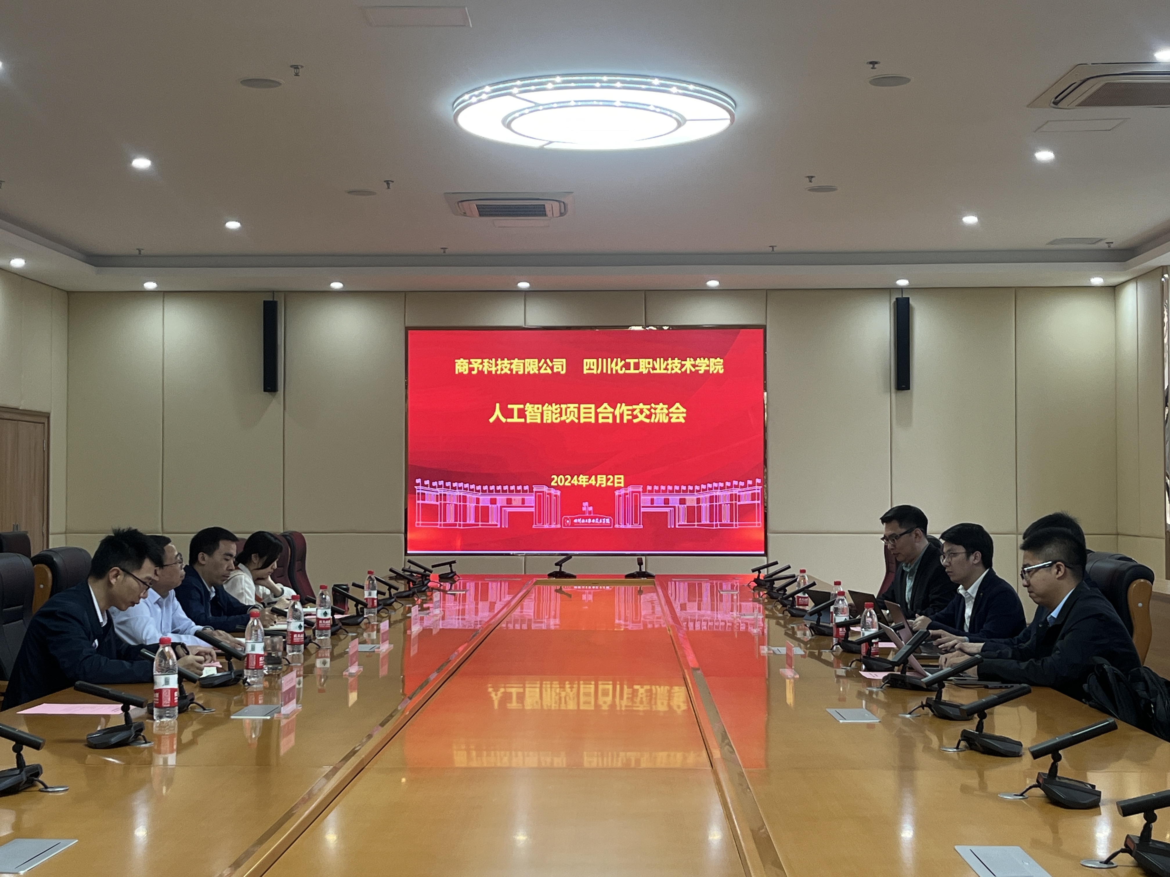 近日,商予科技有限公司与四川化工职业技术学院人工智能项目合作交流会在学校综合办公楼107会议室举行。商予科技有限公司总经理刘彬,副总经理姜斌斌,区域总监程冠桥,上海伊诺集团总经理缪玉忠,学校党委委员、副院长邓启华,智能制造学院院长李林鑫,数字经济学院副院长(主持工作)罗在文、副院长张平昕参会,会议由李林鑫主持。