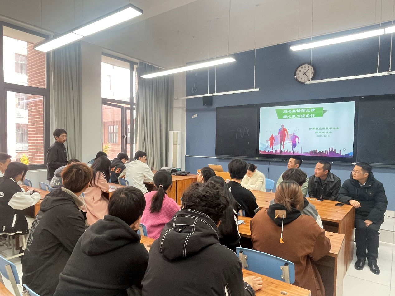 2023年12月6日下午,数字经济学院计算机应用技术专业在8E204召开了以“同心共话师生情,凝心聚力促前行”为主题的师生座谈会,来自计算机应用技术专业的各班学生代表共45人参加了此次活动,计算机应用技术专业负责人曾向吉,专业教师王帆、姜波、余彩云、黎青霞参会。