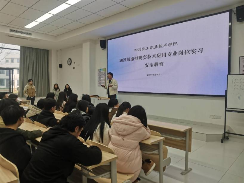 为确保学生在岗位实习期间能够安全稳定地完成实习任务,1月16日中午,数字经济学院虚拟现实技术应用专业召开2021级岗位实习安全教育大会,实习指导教师张平昕副院长、肖华亮、凌榛、肖恺林老师及2021级VR专业参加岗位实习的全体学生参会。