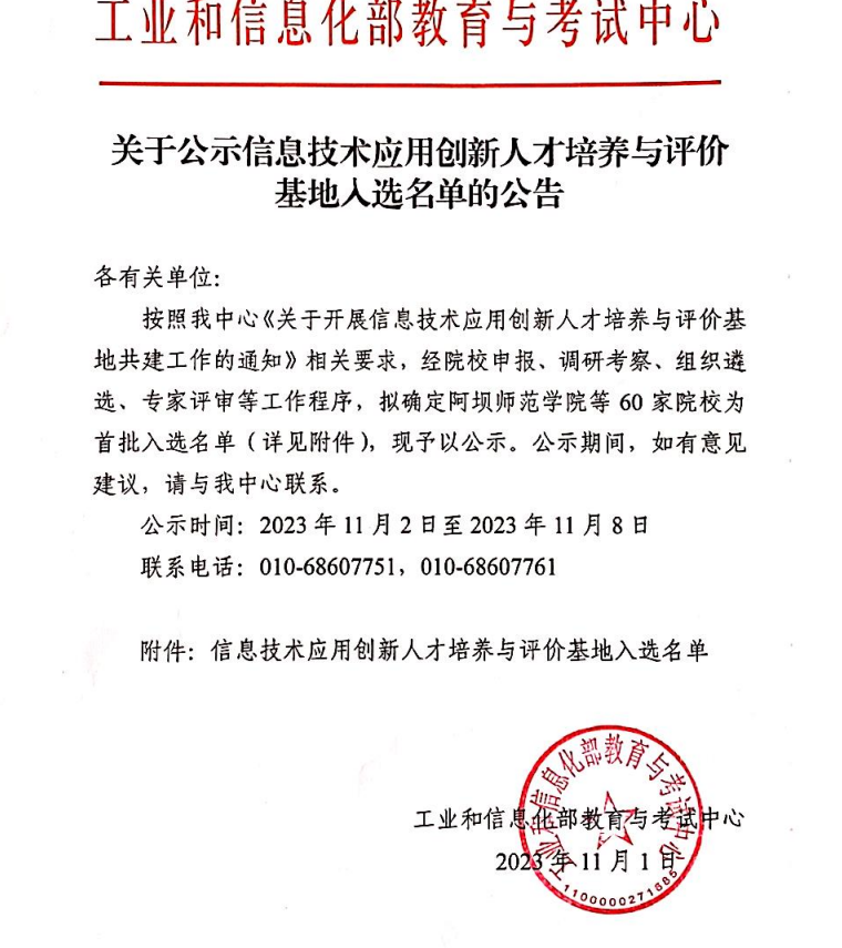近日,国家工业和信息化部公示了信息技术应用创新人才培养与评价基地名单,我校数字经济学院成功入选。