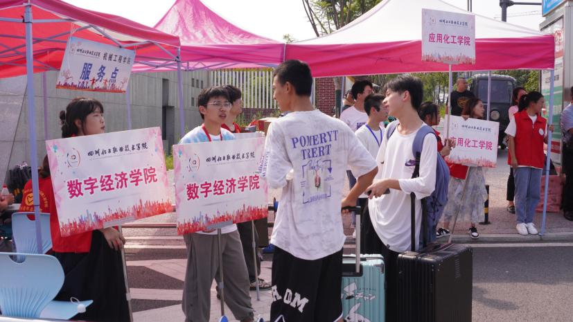 2023年9月2日至3日,在泸州高铁站、泸州客运站接待点,学院老师和学生志愿者热情地接待前来报到的新生和家长;在学校南校门专门设立迎新点位,张贴迎新标识,配备迎新物资,安排志愿者帮助新生完成线上报到、线下入校的全部流程,帮助他们搬运行李;在博学楼环廊接待点,新生辅导员、学生助理帮助新生完成报名、注册流程,专业老师对新生的专业问题进行答疑解惑,学院领导亲临现场协调工作。