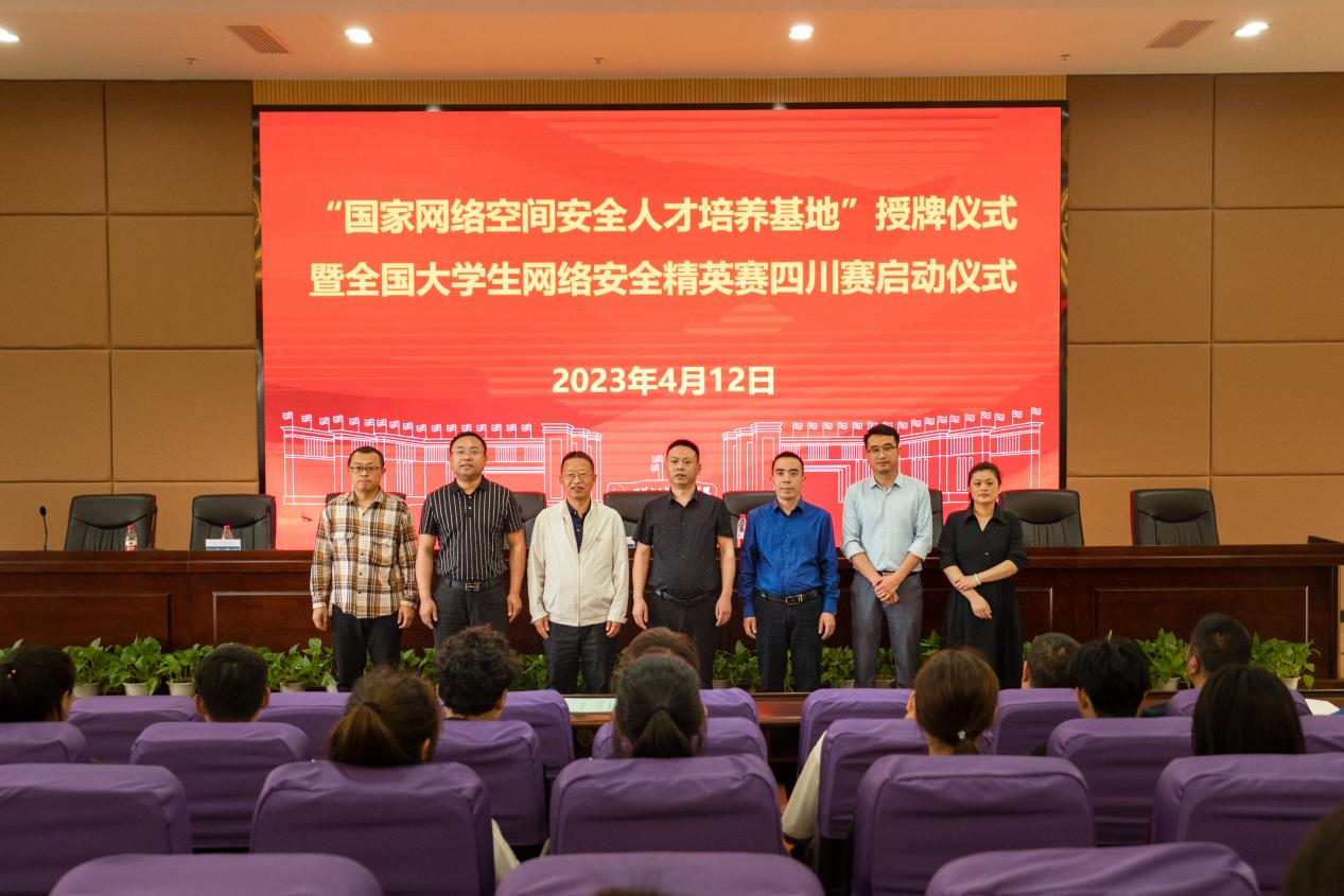 2023年4月12日,“国家网络空间安全人才培养基地”授牌仪式暨2023年全国大学生网络安全精英赛启动仪式在图书馆四楼报告厅隆重举行。四川化工职业技术学院党委委员、副院长蒲开伦,数字经济学院院长刘钊勇、数字经济学院副院长罗在文,国家网络空间安全人才培养基地副主任蔡庆河,四川智天远教育科技有限公司总经理张毅华、产教融合部总监张虎、产教融合部经理郑晓艳出席了本次活动,数字经济学院各专业学生代表共计300余人参加。