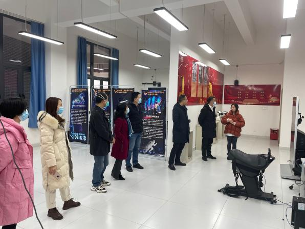 考察过程中,杨庆国科长认真听取了VR科普基地的介绍,体验了校园全景漫游、消防安全演练、红色文化教育、党史知识、3D游戏等VR项目,感受基地项目的科学性、教育性和趣味性。