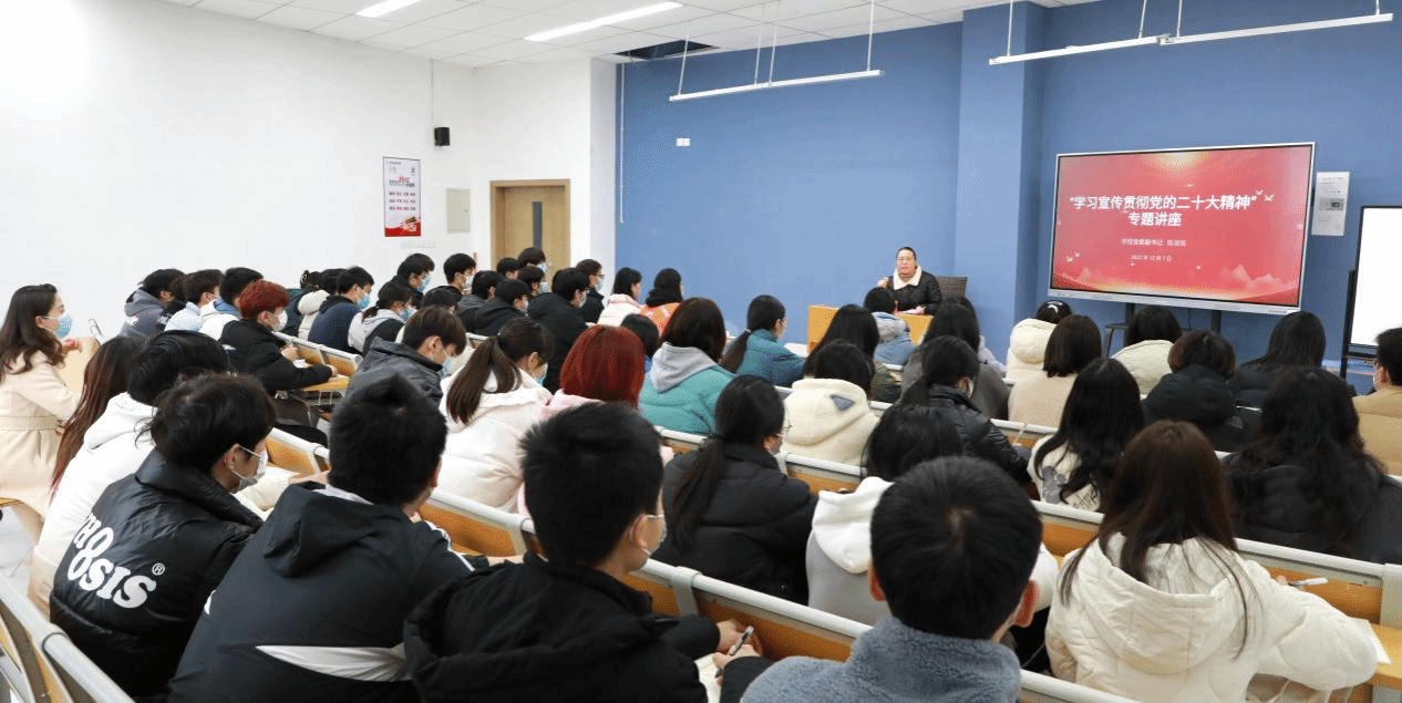 陈书记首先介绍了中国共产党第二十次全国代表大会召开的基本情况,要求大家深刻认识党的二十大精神。她从七个方面进行了宣讲:大会的主题;党过去五年的工作和新时代十年的伟大变革;马克思主义中国化时代化;中国式现代化;对党和国家事业的新部署、新要求;坚持党的全面领导、全面从严治党;以顽强的斗争应对风险挑战。陈书记用扎实的理论讲解、生动的案例分析,结合中国国情特别是改革开放以来的发展历程,以及学校第三次党代会提出的“1135”发展战略进行宣讲。最后,陈书记对同学们提出希望:青春向党,强国有我,要坚定社会主义理想信念。
