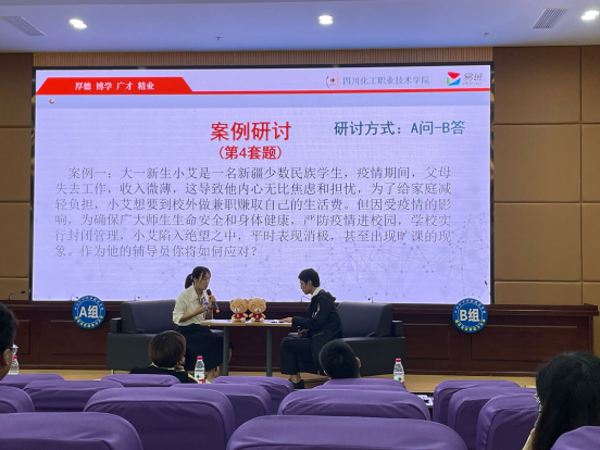本次大赛共有来自全校7个学院14名辅导员进入决赛,设置一等奖1名,二等奖2名,三等奖3名。邀请到西南医科大学学工部部长谭群英,西南医科大学外国语学院学生科长、四川省第八届高校辅导员素质能力大赛三等奖获得者刘烨,学校学生处处长邓子萍,学校团委书记张林院担任评委。赛事对标省赛,设置谈心谈话、案例研讨两个环节,全面考察和检验参赛选手的理论水平、逻辑思维、语言表达、临场应变等综合素质能力。