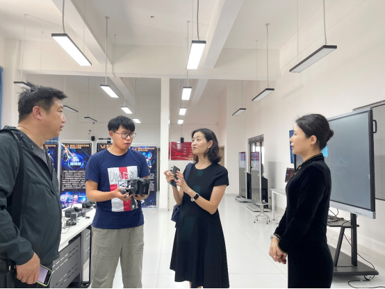 本次交流主要围绕数字经济学院虚拟现实应用技术(以下简称“VR”)专业和大数据专业的建设与发展展开,专家组一行先后参观3D引擎开发室、VR体验中心、大数据实训中心、VR双创工作室等专业实训基地,详细了解学校专业建设和学生培养模式,并对专业未来发展提出建设性意见建议。