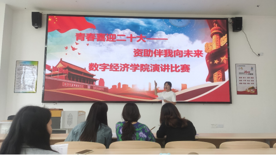 2022年5月20日,数字经济学院在勤学楼举办了“青春喜迎二十大,资助伴我向未来”演讲比赛,本次比赛由数字经济学院团总支书记党浚嘉主持,罗秋兰、王蕊两位老师参加评审,20级、21级同学参加。