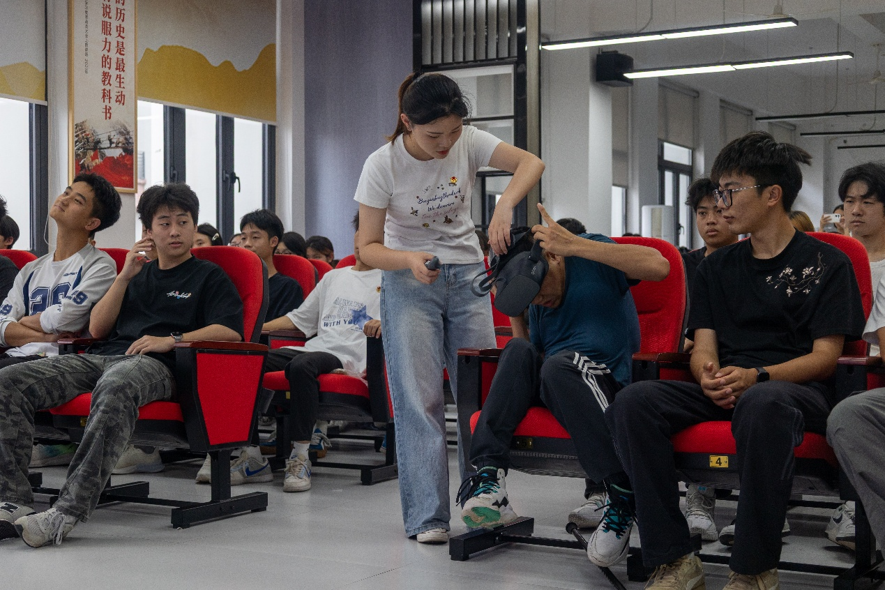 为深入贯彻国家《"十四五"数字经济发展规划》战略部署,激发青年学子科技报国的使命担当,2025年5月23日下午两点,数字经济学院团总支在虚拟现实(以下简称VR)仿真实训基地举办了一场以“科技创新,争当科创主力军”为主题的沉浸式示范团日活动。学院团总支书记唐雪梅、校团委刘羽老师、专职辅导员王蕊老师、VR2432班全体同学及学院各班团支书代表共60余人参与。