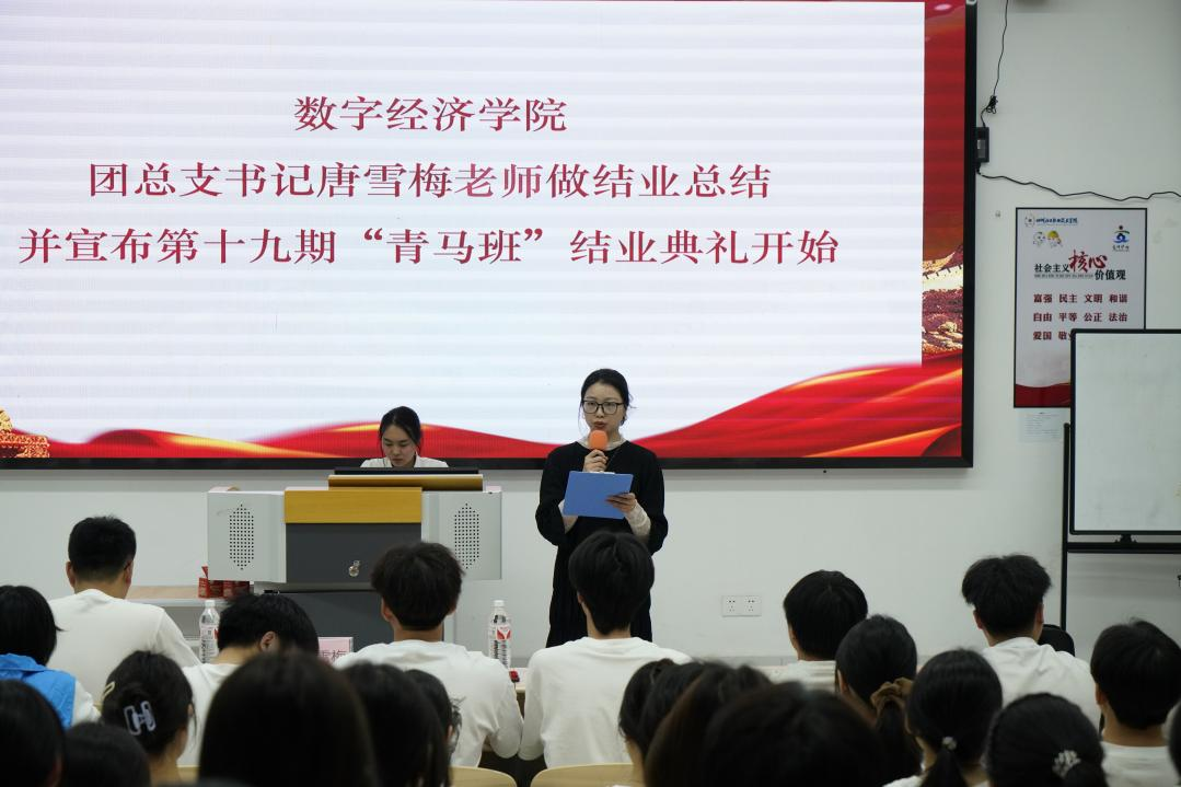 春风浩荡启新程,砥砺奋进正当时。4月17日,数字经济学院第十九期青马班结业暨第二十期青马班开班仪式在11A107教室圆满举行。数字经济学院团总支书记唐雪梅老师、团总支副书记武江毅老师出席活动,两期青马班学员齐聚一堂,共同见证青年马克思主义者培养工程的薪火传承。活动分为结业仪式与开班仪式两部分。