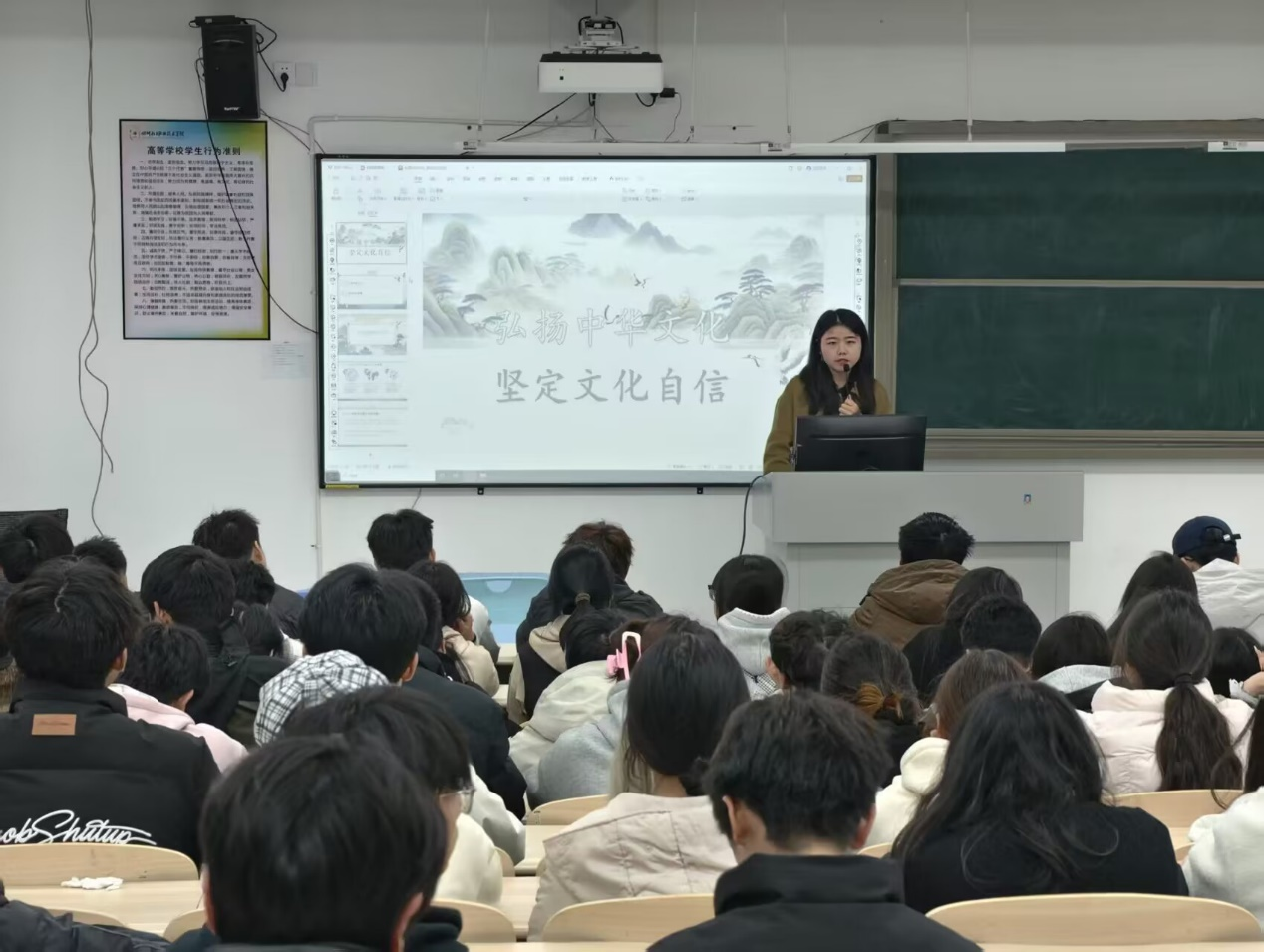2025年3月14日下午,数字经济学院团总支在勤学楼11A203教室举办了主题为“弘扬中华文化,坚定文化自信”的讲座,本次活动由谌荟竹老师主讲。