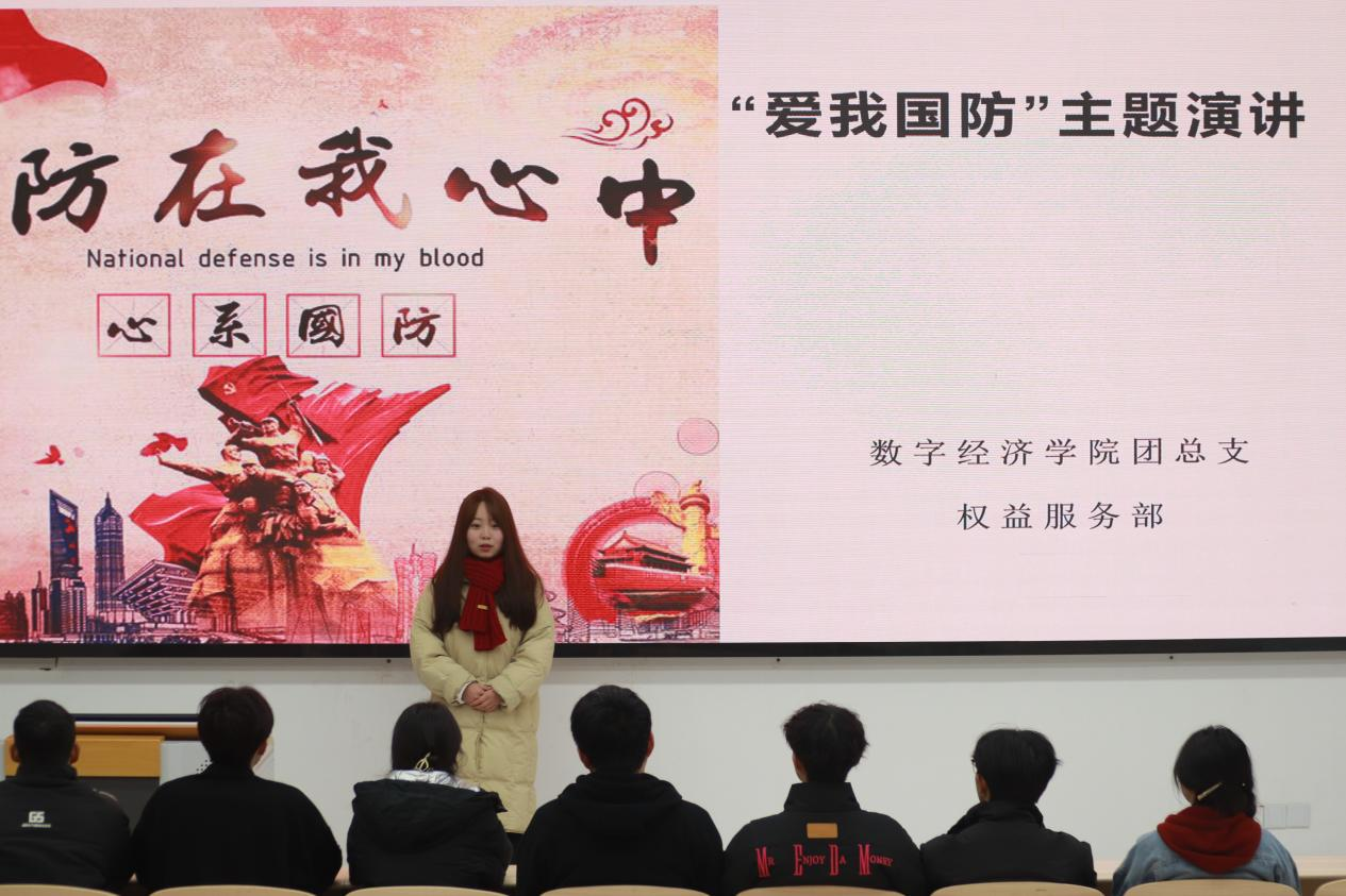 为深入贯彻习近平总书记关于加强全民国防教育的重要指示精神,近日,数字经济学院团总支学生会权益服务部在8L209开展“爱我国防”主题演讲比赛。