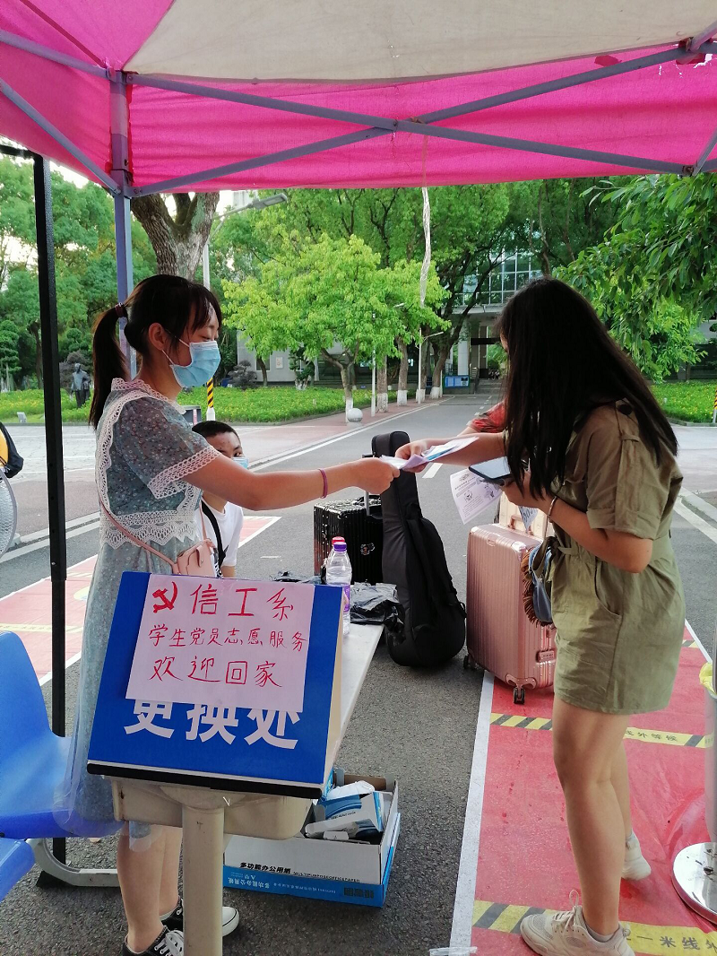为了充分发挥学生党员的先锋模范作用, 用实际行动践行共产党员全心全意为人民服务的根本宗旨,信工系学生党员主动报名参加返校复课志愿服务工作,助力同学们安全有序返校。
