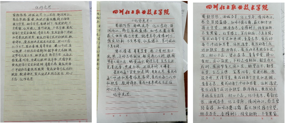 活动吸引了来自不同年级、专业的100余名学生参与,共征集到美术、书法、摄影、微视频四大类别的优秀作品66件。参赛学子以笔墨为媒、镜头为眼,将青春的观察与思考融入创作:美术作品笔触细腻,生动刻画人物与自然;书法作品涵盖硬笔与软笔,内容既有校歌歌词也有经典诗词,工整中见真情;摄影作品聚焦校园生活,以光影定格温暖瞬间;微视频则通过生动叙事,传递出真挚的成长感悟。经评审,数媒2431胡丽琪、计应2432李祉怡、测绘2532加瓦木杰等17位同学荣获优秀奖,其作品将代表学院参加校级决赛。