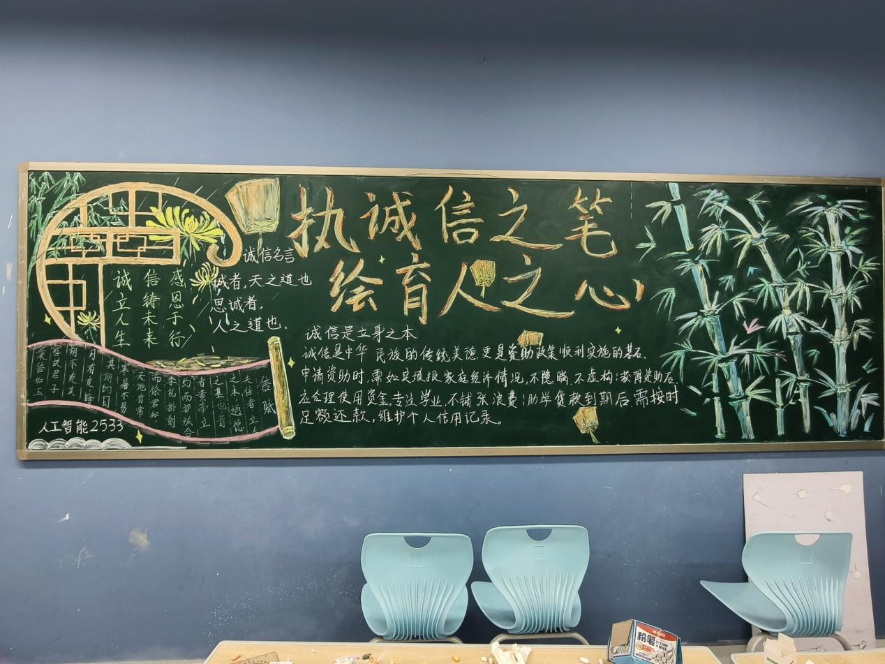 为深入宣传国家资助政策,深化资助育人成效,近日,数字经济学院成功举办了 “执诚信之笔,绘感恩之心”主题黑板报创作活动。