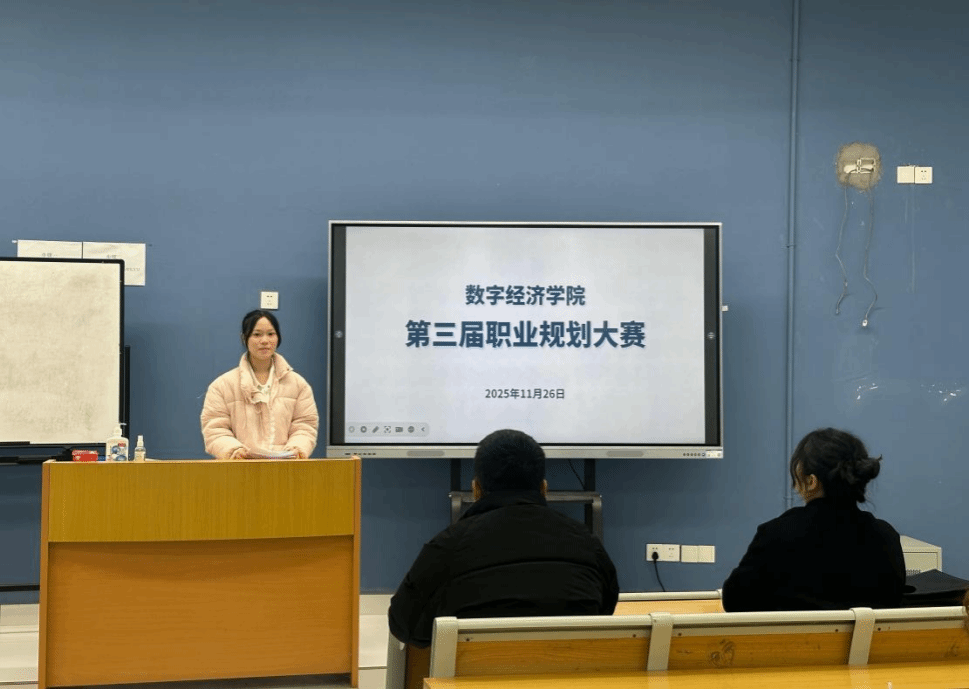 为深入贯彻落实四川省教育厅、人社厅关于举办第三届大学生职业规划大赛的相关要求,切实提升学生职业规划意识与就业竞争力,2025年11月26日下午,数字经济学院成功举办了第三届大学生职业规划大赛选拔赛。唐雪梅、魏杰、武江毅、李科四位老师担任评委。